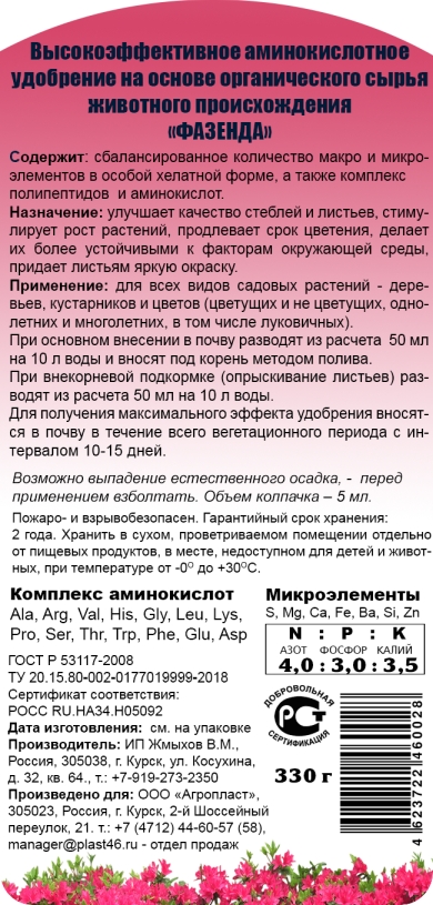Содержит сбалансированное количество макро и микроэлементов в особой хелатной форме, а также комплекс полипептидов и аминокислот.