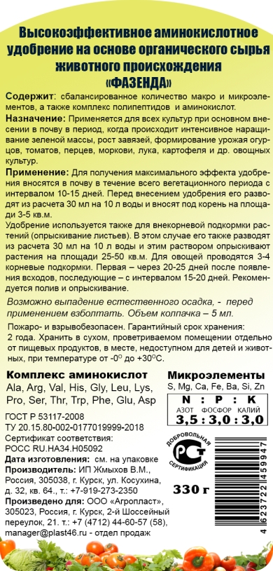 Содержит сбалансированное количество макро и микроэлементов в особой хелатной форме, а также комплекс полипептидов и аминокислот.