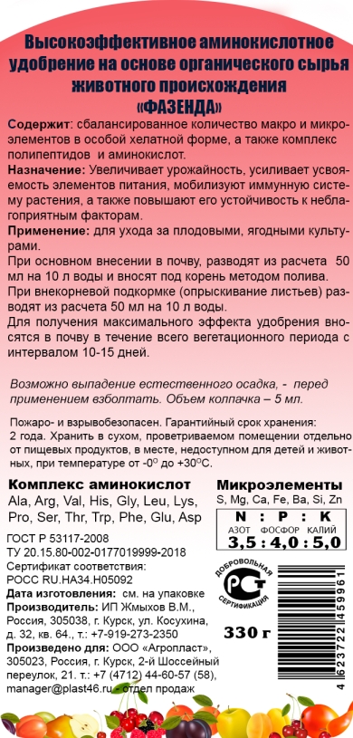 Применение: для ухода за плодовыми, ягодными культурами.